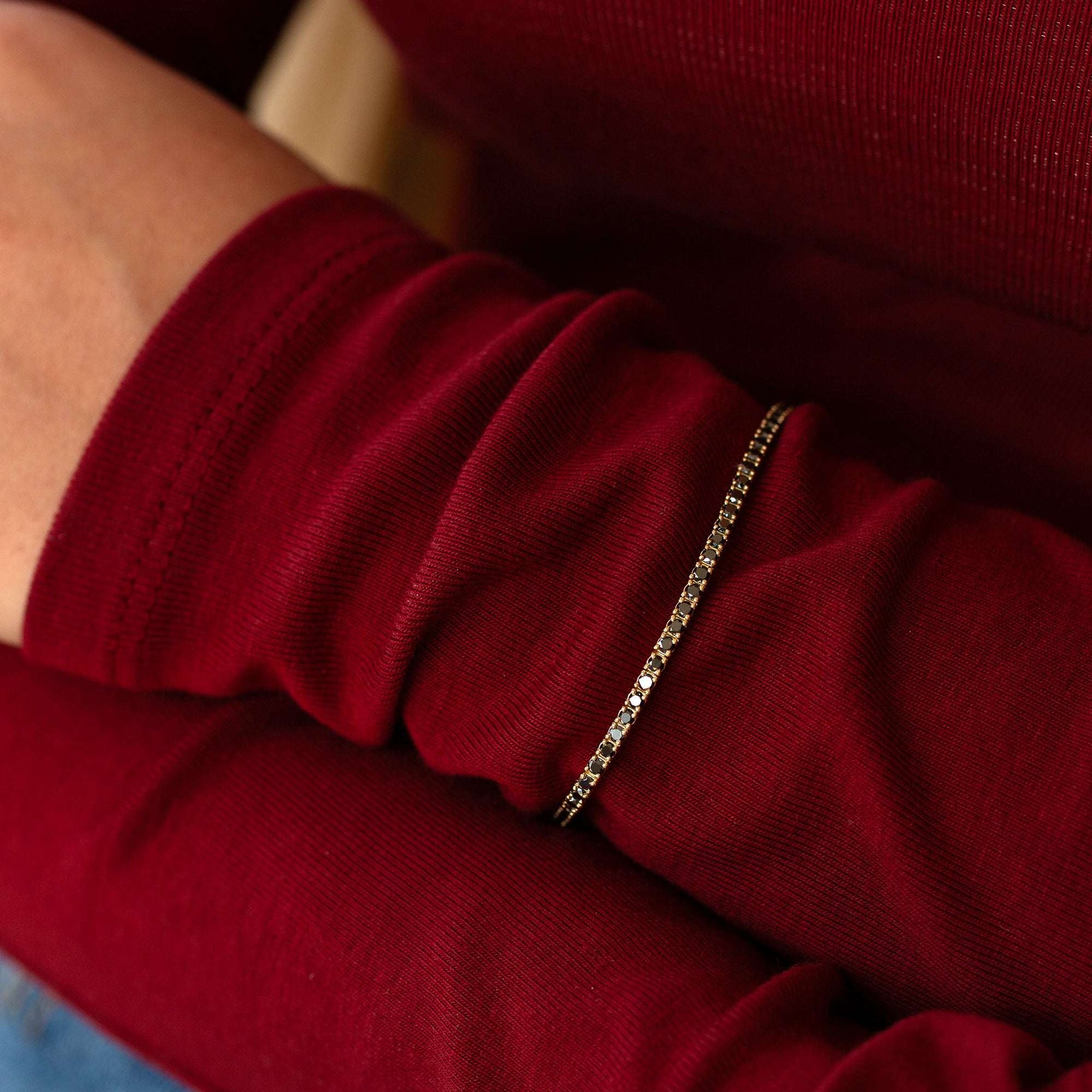 צמיד טניס יהלומים שחורים עם נוכחות מדויקת וסטייל לא מתאמץ. היהלומים השחורים נבחרו בקפידה ושובצו בזהב 14 קראט. הצמיד מגיע באורכים שונים ומונח על פרק כף היד באופן נעים וגמיש, כזה שמרגיש כמו חלק ממך.