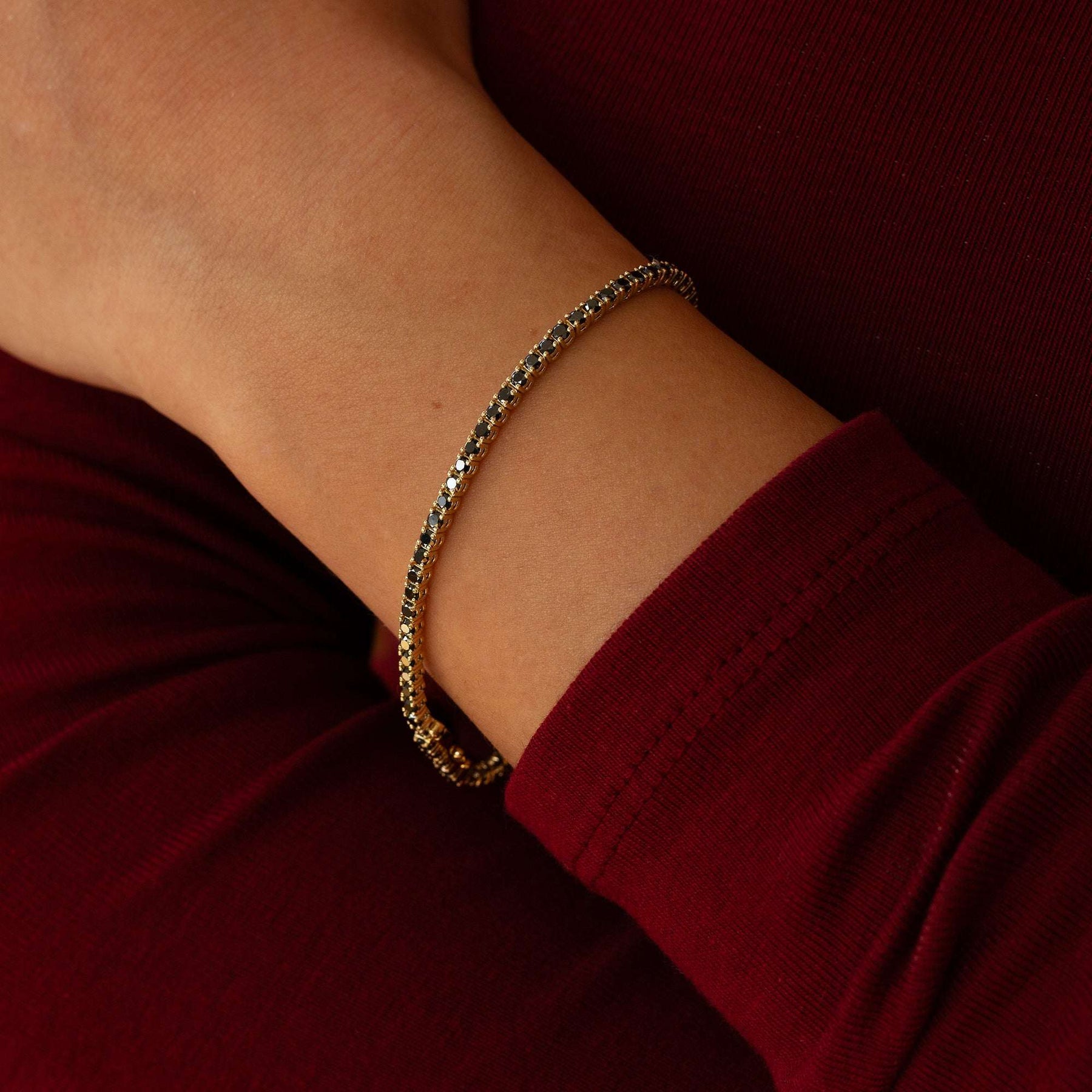 צמיד טניס קלאסי ואלגנטי מזהב משובץ יהלומים שחורים