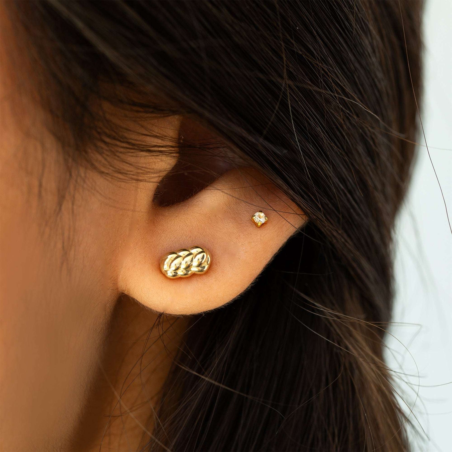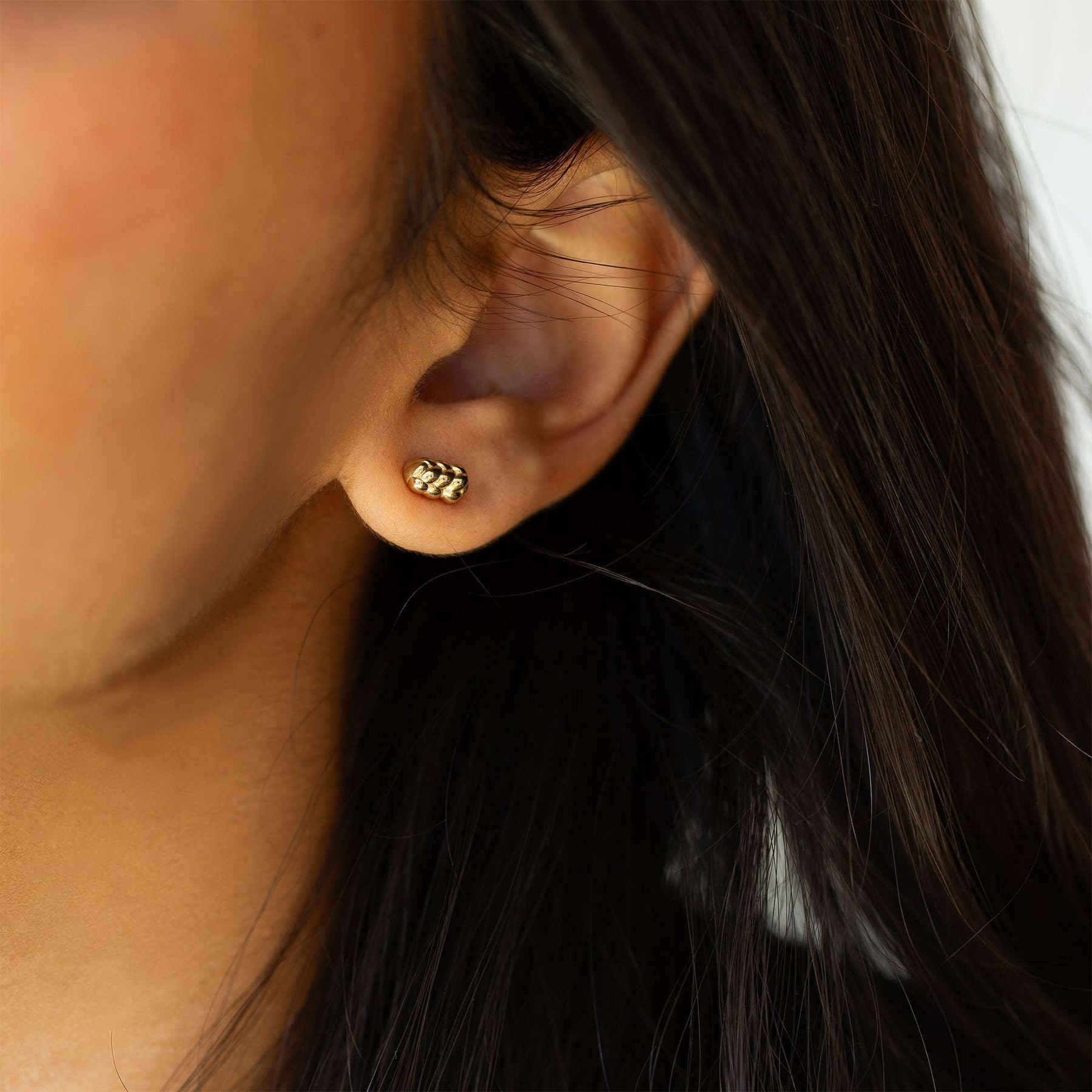 עגילי זהב צמודים לנשים שמעריכות עיצוב מדויק, עדין ומפוסל. הצורה המעוגלת שואבת השראה מעבודת יד קלועה, עם קווים רכים שיוצרים תחושת תנועה ונפח גם בגודל מינימליסטי. הגימור המבריק מוסיף להם נגיעה רגועה אך מוארת, ממש כמו ליטוף של אור.