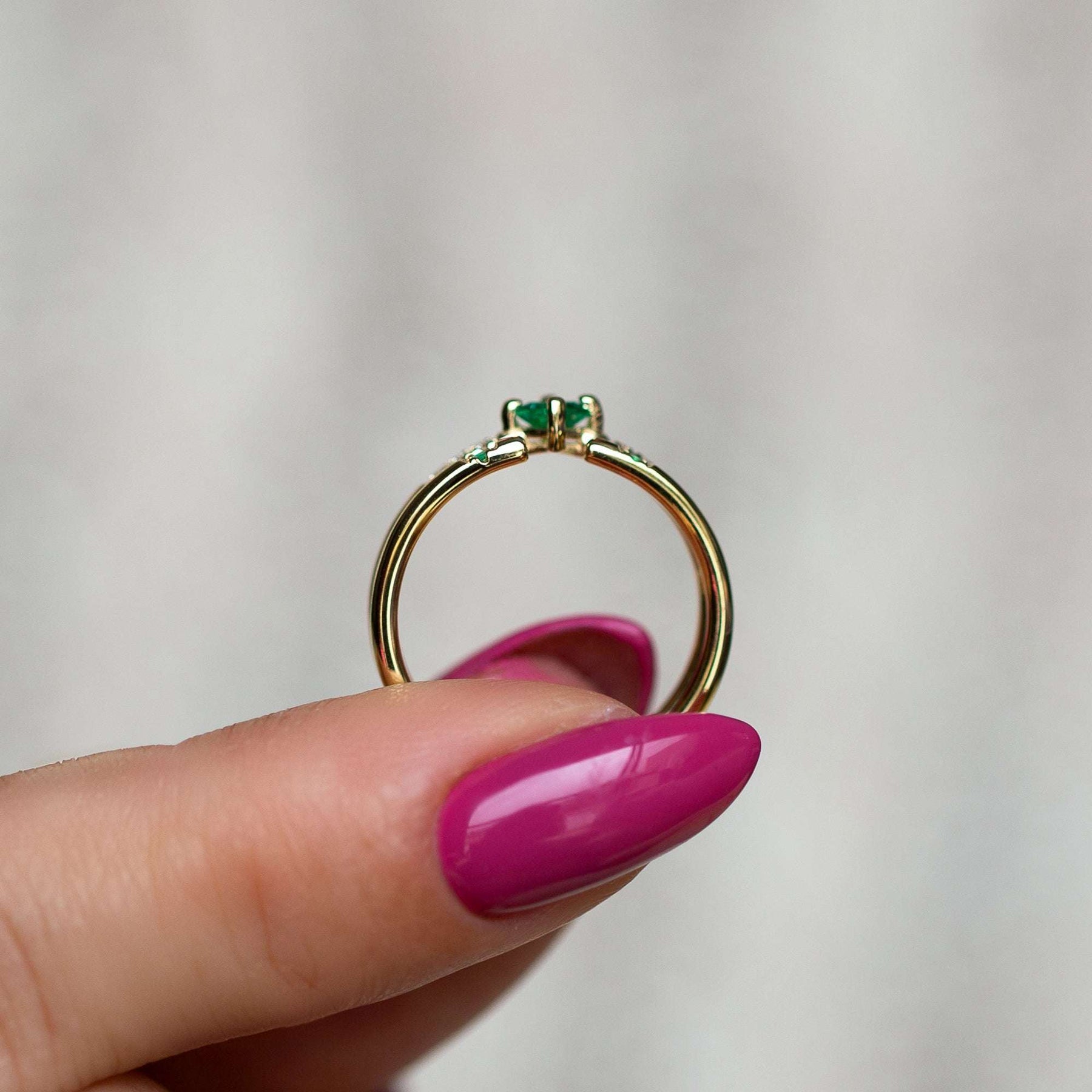 טבעת זהב משובצת אמרלד ויהלומים