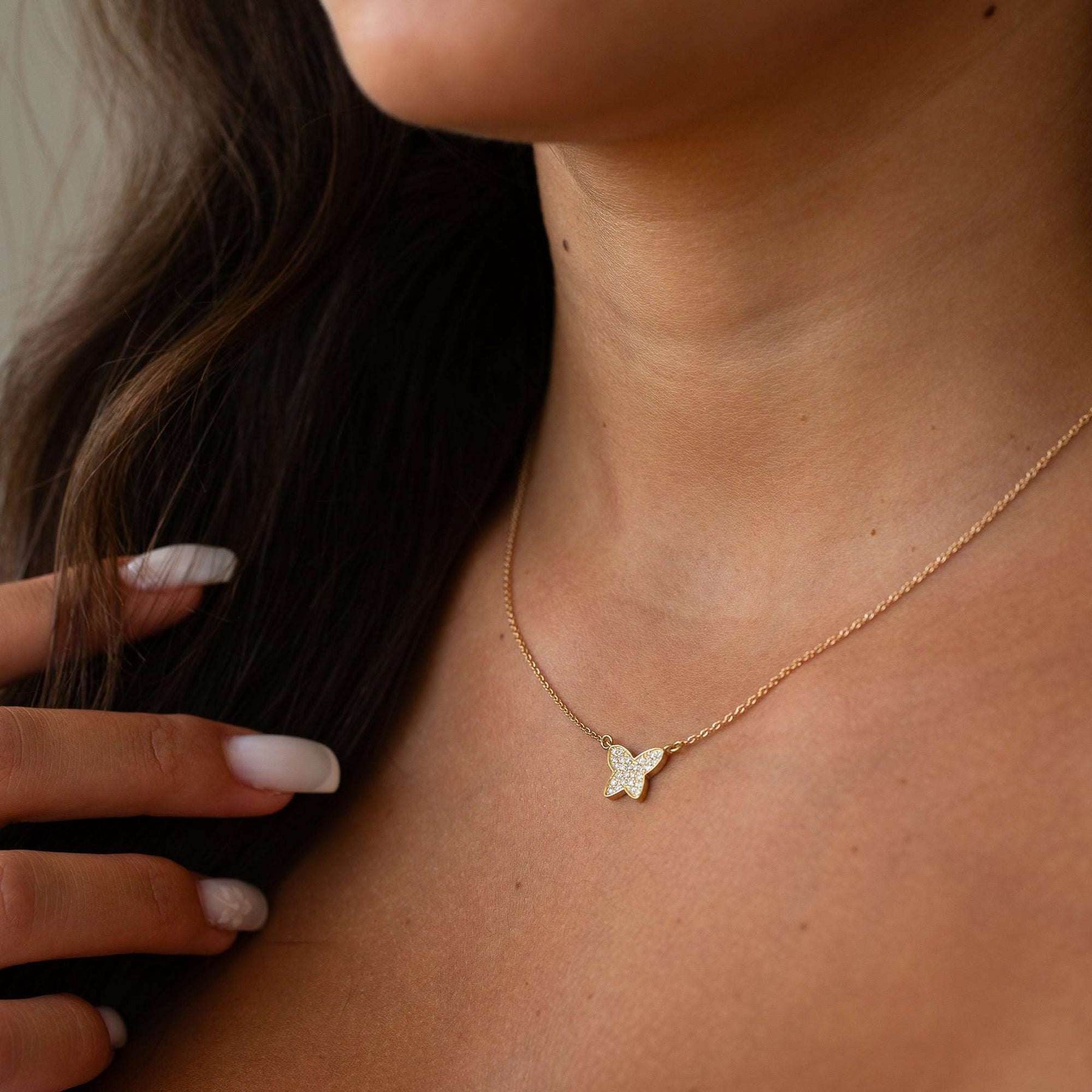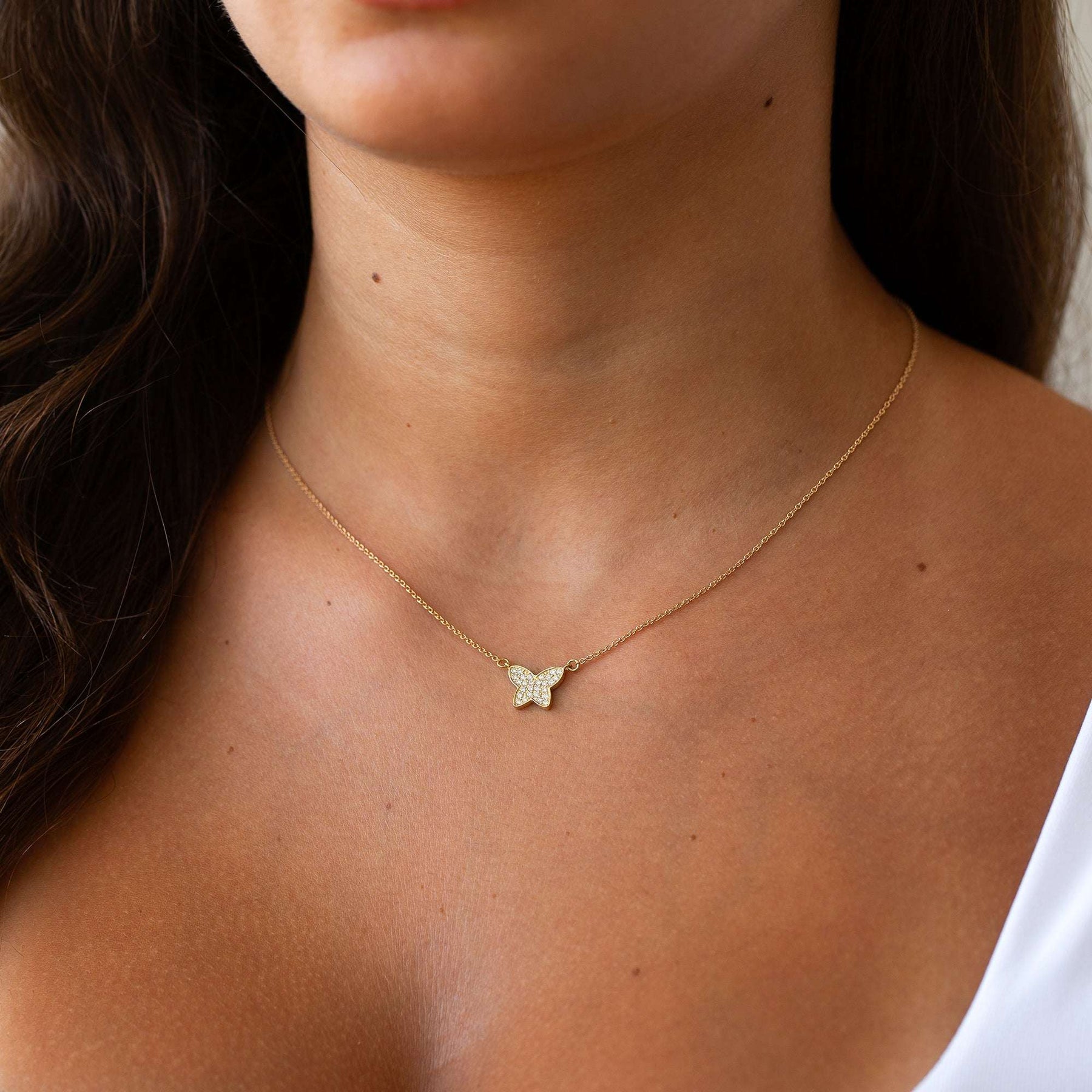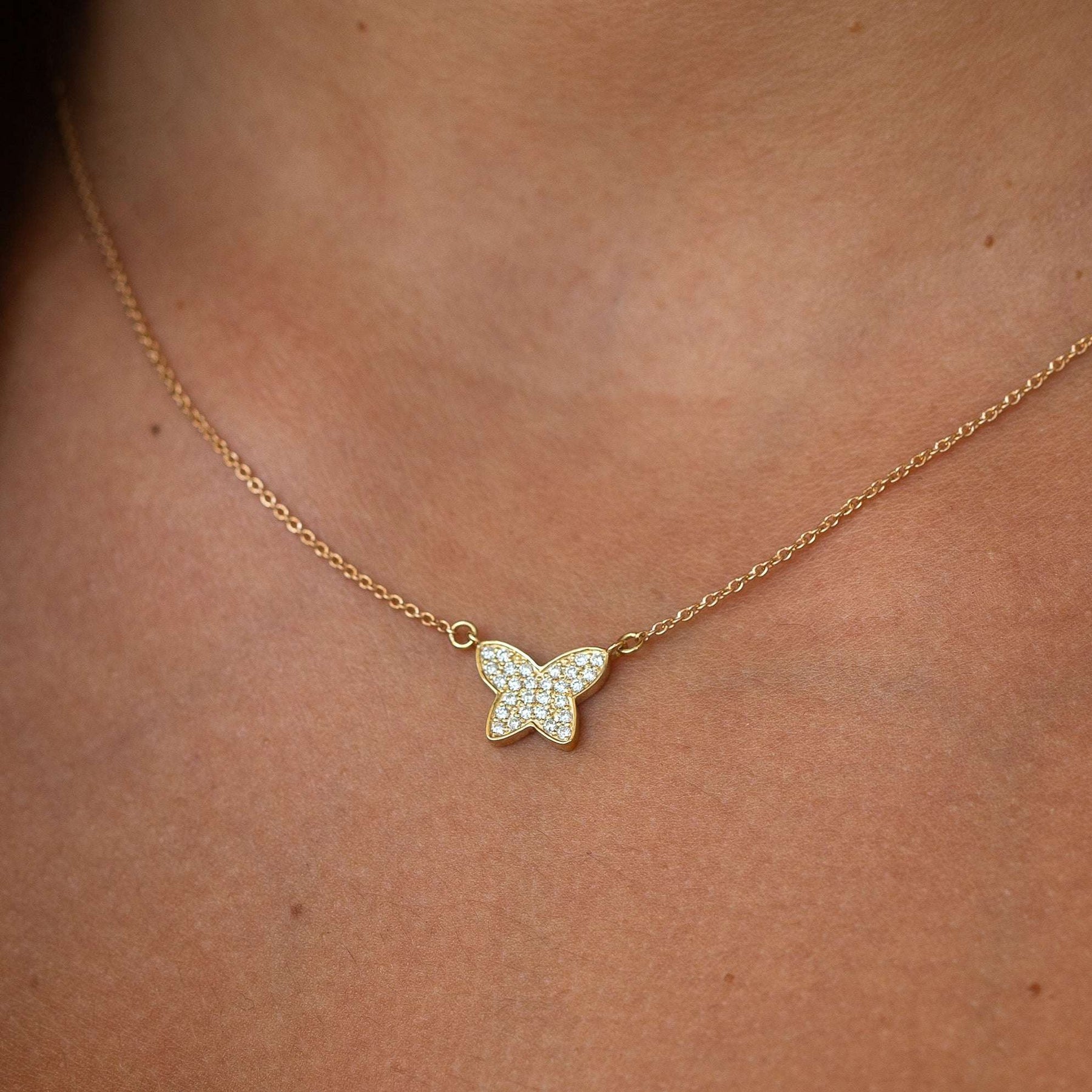 שרשרת פרפר מזהב משובצת יהלומים | לירי